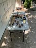 Participating in the annual Oak Hill community yardsale. A range of inventory for varied interests. Household: Pressed and elegant glass, kitchenware, mugs, framed prints, table linens, SP flatware & bowls, golf balls/gloves/travel bag, storage tubs, enamel pot, costume jewelry, fish steamer. Unusual: Welding rods tin box, downspout block, English saddles, arcade tokens, woodworker’s dowels, 50’s dish drainers, pie shelf, Frankoma & M. A. Hadley pottery, craft show pottery. Big Things: Ladderback chair, bookshelves, MCM cabinet, Army trunk, school desk, clothes drying rack. Antiques: Crocks & jugs, meat hook, hay hook, hay fork, kettle bail, green jars, oil lamps. Also: Old auto lenses, auto bulbs, gas caps, cheese boxes, 2 CB radios/ant’s, 2 sm steel drums.