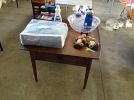 Vintage – SILENT AUCTION on Twin Beds (My Dad made in the 1942’s & my Mom made Reversible Quilts with Crocheted Covers), Glass Insulator, School Desk/Chairs, Wooden Highchair, Table w/ Treadle bottom & Marble top, Suitcase Holder Plant Table, Tinker Toys, Glass Citrus Juicer, Glass Covered Dish, Aluminum Roaster w/ Lid
