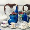 MCM Starburst Clock, Thomasville HB, Armoire & night stand, Penn House Cherry Table and 6 and China cabinet, Weber grill, patio, antique stepback cupboard, household, twin bed, grandfather clock, sectional, antique tins, teacups and much more
