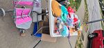 Lots of clothes, shoes, toys, books, kitchen storage, garden fencing etc.