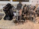 - kitchenware: coffee machines, glassware, pots and pans, trays, knives, utensils, glassware, silverware and plate sets featuring brands like Villeroy & Boch, Wedgewood, Spode, Limoges, etc