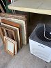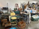 Lots of old items, household, craft supplies, frames, shelves, some furniture, rowing machine.