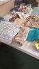 Holiday craft supplies, yard goods, thread and material.