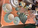 Coffee table, side table, chair n ottoman, golf cart, new Eddie Bauer sleeping bag, crystal stems, men’s/ladies clothes, misc linen, glassware,