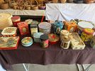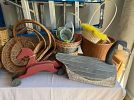 COLLECTIBLES: Baskets of all sizes, Collector Tins, Button Hooks, Mola Potholders, Mount Vernon Commemorative Coin, Novelty Spoons