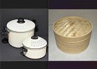 HOUSEHOLD ITEMS: Liquid Serving Dispenser, Steamers, Stockpot, Cast Iron Doorstop, Silverplated Items