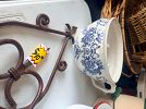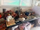 Many collectibles; vintage; baskets galore; home decor vintage and new; bedding for full-king; vintage quilts; vintage glass ware; window treatments, draperies, valances and more. Many dishes and dish sets; Vintage rattan coat rack; vintage gold wall candelabra; Clothing for $2.00 - $8.00; Christmas decor; tons of throw pillows $5.00 each....AND so much more!!