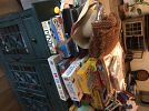 Board games, kids toys, kids clothes, beauty products, air hockey, dart board, crafting, shoes, boogie board, radio, dvd’s, light fixtures