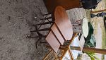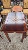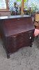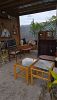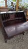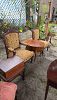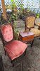 Mahogany drop front secretary, game table, Victorian chairs, Rattan glass top end tables, vanity stool, women's clothing, lamps, Cedar trunk, tilt top tables, cast iron garden furniture, large paintings art.