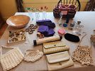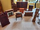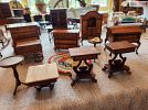 COLLECTABLE DOLLS/DOLL HOUSE ITEMS jointed/bisque/celluloid/dolls/Georgetown Collection Navajo dolls/1940’s carnival prize doll/Scottish girl/German boy&girl/Many pieces of vintage&antique furniture some handmade & signed beds/hutches/stools/rockers/kitchen&dining sets/porcelain bathroom fixtures/tables/chairs/rare folk art art hand crafted patio furniture, etc.. dozens of miniature lamps, dinnerware, pots, mini pottery, dishes cups,rugs, fireplace, porcelain trays/sets, vintage farm animals, Breyer horses, etc .Dollhouse building supplies: roof shingles, flooring, mouldings, wallpaper sheets, staircases,windows&more/Chinese Cork & Rice paper LOTS of HANDMADE VINTAGE LINENS crocheted/embroidered doilies, handkerchiefs/table cloths/napkins/table skirts/victorian style furniture protectors