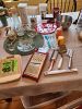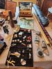 ANTIQUE & VINTAGE ITEMS: primitives/old tools(drop forged wrenches/pliers/cutters, Stanley level,baskets/ large&small cobalt blue glass/new& old buttons/old rolling pins/handmade buggy whip/ nickel shaft bells/brass&wooden candlesticks/2 working handmade vintage golfer whirlygigs/showcase/old jewelers anvil/country scene painting/old matchbooks/copper oil lamp/Eagle six lever lock & hasp from early 1900’s trunk/old keys/brass Ever-Ready men’s shaver-Brooklyn NY/old dice/WW II pin/Roy Rogers scarf ring/pool stick w/case/NH cookie cutter/door knobs/Depression glass,brass wood&pewter candlesticks/Griswold kettle/Japanese Ebisu bronze statue/religious statues&crosses/old stapler/Mickey Mouse night light lantern/hand beaded antique&vintage purses/1920's ladies inlaid vanity set items unused/vintage COACH red leather purse/Bakelite&other lamp finials,lamp harps&other parts/Waldorf Astoria Hotel fork w/apple on handle/Syroco wall hangings of Early/Amer figures/old wood drying rack/cheese tester (France)