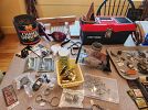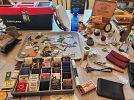 MASTER LOCKS&other locks w/keys/old keys/chain dog collars/shelf brackets/new brass Schlage lock set w/keys/TSA security locks/sliding door latches/new CRAFTSMAN tool box/ ash shovel/large can of nails/small items in 4 bags/$1.00 bins of screws/nuts/ bolts/cup hook/shelf hangers/drawer pulls/hinges and MORE!
