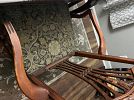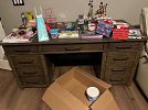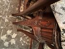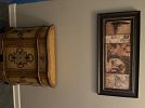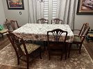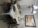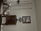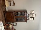 Selling a lawnmower, full bed, twin bed, antique China cabinet and table and chairs set, a kitchen table and chair set, barstools, leather recliner, antique radio, antique foldable table, top, multiple wall, hangings, Bowflex, elliptical machine, and miscellaneous items.