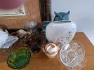 Items for sale: tools, power saws, garden equipment, clothing, glassware, vases, linen items, dog crates, fish tank, porcelain dolls and many other items