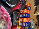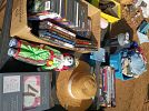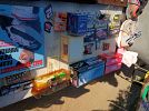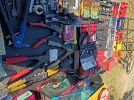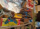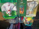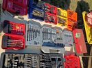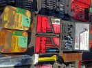 Tools, Collector Barbie dolls, sanders, stainless steel, toys, portable tool box, bassinet, infant car seat, jewelry, clothes, Nascar shirts, Antique tools, flower garden chairs, Avon bottle collection, Racing collectables, Racing trading cards, Bolts, nails, screws, liquid logic paddle board......