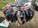 MASSIVE Multi-Family Garage Sale, if you need kid or baby items this is the place to be! These are preliminary pictures, too many clothes to fit on the racks, there will be additional tubs for clothing--SO MANY NEW WITH TAGS--most items 0.50 to $2.00--Swiffer Wet Jet, puzzles, kids books galore, adult fiction novels, kids shoes, storage items, games, decor, holiday items, outdoor items, women's (Size XS-Plus Sizes) clothing, men's (Size XS-Plus Sizes) clothing, dog clothing, dog accessories, and toys, patio lighting, landscape materials, activity mats, a bassinet, glassware, movies, Corinthian Belles NEW, baby toys, hats, furniture, work out equipment, and so much more, far too much to list! Big box of free items as well! Clothing is organized by gender and size for easy shopping! Come find everything you need! Will be open unless rain washes us out--too much to fit in just garage :) Reasonable prices, come and see all that we have curated for you!