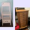 - Tall wooden jewelry holder case (18x14" and 41" tall, mirror on top and two pop out sides)