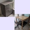 - Grey-ish wood filing cabinet, great quality (46x30" and 30" tall)