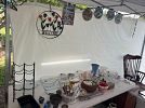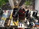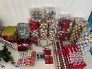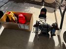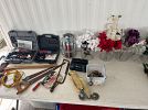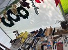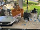 Florida/beach wall art, GI Joe box, sleeping bag, ladies shoes 8.5, craft supplies, decor mesh, paintables, antique fishing lure books, new shatterproof Christmas ornaments, charcoal starter, swing-arm magnifier lamp, boat house slings, collectibles, antiques, brass candle holder, small furniture, cut glass, glasses, Bavarian and Occupied Japan collectibles, milk glass, tools, floral stems, tow strap, dremel, Craftsman electric handtools, pneumatic stapler, pneumatic grinders, drill bit sharpener, bench grinder, dog toys, wreaths, large bows, bed risers, Roto-Zip, silver utensils, lawn decor, handtools, hand truck, QuikDriver, 6ft ladders, air compressor, fire extinguisher, BSA & Army collectibles, and more!