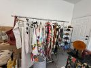 Tons of gorg. womens clothing, mens clothing misc. sizes on both, a little bit of vintage mixed in, scarves, hats , belts, handbags, Brand New Tumi carry on marked 325.00, empty Hermes boxes and one Chanel, nice selection of costume jewelry