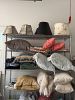 many lamps, mirrors, chairs, small hand painted hutch, a few lovely rugs- one is an Anne Selke rug, Artermis studio Lamp, battery touch lamps, two sets of nesting tables- one with two tables and one with 3 tables, fan, lamp shades