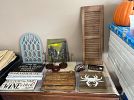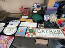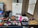 Bins, Christmas, kitchen, decor, instant pot, puzzles, old sewing machine stand, camper, and lots lots more next door.