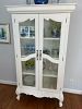 10x10 pop-up tent (like new), crib/car seats/boosters, inflatable mattress, 20-in. trail bike, lamps, framed pictures, home accessories, custom drapes, curtain rods, blinds, file cabinet, dog steps, fabric for pillows, clothing and shoes for girl (ages 6 - 10/12), nylon-covered playhouse, 18-in. doll accessories, gasoline powered leaf blower and weed eater, 54-in. faux wood blinds, 3'w x 6'h x 15"d white French wood armoire with glass panel doors (like new), black chair-side chest, 3' x 6' solid wood executive desk with glass -covered top, and leather swivel office chair.