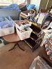 Some furniture. Drum table, nestle display, wooden coffee table etc