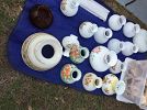Lots of items for sale. Sets of vintage dishes, race cars, die cast banks (auto), aluminum for pool cage (white), car seat still in box (used twice), booster seat, hardware for pool cages (bolts, screws, misc.), large amount of vintage and current glassware, large porcelain doll with pink dress, Indonesian dancer wax doll behind glass container, vintage dolls, DVDs, tapes, glass prisms, women's clothes blouses (large) and dress pants (size 12 and 14), shredder fits on top of garbage can, vintage carnival punch bowl, Winterling Bavarian tea set, Royal Doulton platter, plates and bowls, Nachtmann decanters, Bavaria German Heinrich platter, Crystal HOYA 5 sorbet bowls (Japan), too many items to mention. Stop by and check out.