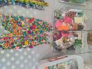 Lots of crafting items, 12x12 printed paper, 8x10 color paper, note cards, index cards, sticker packs, sticker sheets, stamping supplies, paper cutters, greeting cards, assorted dye cuts, mini note pad sets, seed bead, glass beads, strung beads, pendants, metal findings, heishi bracelets, hundreds of packages hand made earrings, bead kits, handmade necklaces, wood bead bracelets, husky wheelbarrow, washer pedestal new, Ryobi lawnmower with battery and grass catcher, home decorations, porcelain dishes, woman's clothing items, and lots of other goodies. Please don't forget your recycling bags.