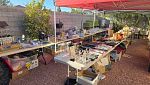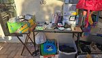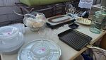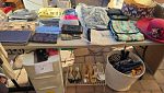 Everything set up in back yard, Huge collection of house hold items. Kitchen items, dishes, pyrex, Crystal and Glassware. Huge collection of costume jewlry and Jewelry making supplies, Lennox Christmas decorations, Men's, women's and babies clothing and shoes, several tripods, twin, queen and King size linnen, curtains and rods, tools, living room and bedroom furniture, beanie babies collectibles, Barrington Bears collection, vinyl albums, books, Office supplies, tons of baskets for Easter, wall artwork, air mattresses for camping or extra guest, Vintage Furniture steamed clean in non-smoking and pet free home. So much more!