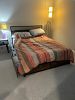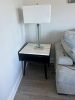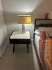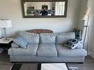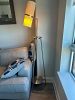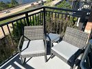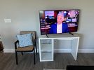 TV, TV Stand, Patio set with 2 outdoor chairs, 1 mirror, 1 Queen size bed, chest of drawers, Marble top Coffee table, 2 side table lamps, 2 standing lamps, 2 bar stools, one accent chair, 1 carpet, clothes storage, Marble top side tables, Pull out sofa couch