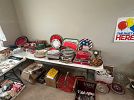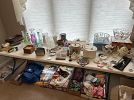 Whole house estate sale, full of furniture and personal items and everything needed for a dinner party, entertaining and lots of decor. The house itself will be coming up for sale shortly. Some of the included items are as follows: Glass top rattan/wicker sunroom dining table with matching couch and end table, several lamps, China hutch, several sets of China, nice stainless silverware set, dozens of serving platters of all types(vintage and modern), large, serving bowls, heavy leaded glass bowls, many many sets of placemats with matching cloth napkins in many designs and colors, Vera, Bradley placemats, decorative table runners, several nice table cloths as well as disposable table cloths, themed napkins sets, Flag Quilt, Christmas tableware and glassware, Christmas serving platters, watermelon picnic basket, and watermelon themed dinnerware, baking dishes, and fancy serving trays, cranberry glass serving dishes, cut glass serving dishes and cake plates, covered cake plate, lots of decorative towels, mitts and hot pads, lots of vases and flower arrangements, lots of hummingbird decorations, large bell collection, huge piano and music note decor collection, tea pots, tea cozies tea cups, and coffee mugs, MCM solid brass lyre shaped music stand, standing pedestal globe, corner shelf unit, 4 foot church pew, bookcase, desk, padded blanket chest/bench, pots and pans, Vera Bradley purses and jacket, nice leather purses, men's neck ties, costume jewelry board games, framed pictures and wall art, lots of decor and glass art, decorative soap, lots of books, vacuum cleaner, totes full of Christmas and fall decor, shop vac, garage cabinets, several large commercial filing cabinet cabinets, small step stools, hand tools, power tools, yard tools, jewelry, Lots of Books, Stationary, Outdoor patio furniture dining set, Two large concrete benches, Barbecue grill, glass, gazing ball, yard ornaments, ceramic flower pots, lots of modern fishing equipment, poles, rods, and reels, tackle box and tackle, portable fish cleaning station/potting table, LOTS OF ITEMS NOT SHOWN IN PHOTOS, lots more still being uncovered as we pull things out. Things will be priced to sell and will be marked down daily till its all gone. Come and grab some bargains! THE LARGE FURNITURE ITEMS ARE LISTED ON MARKETPLACE AND ARE FOR SALE PRIOR TO THE SALE DATE. NO EARLY SALES ON SMALLER ITEMS .