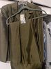 Variety of clothes, home decor, kitchen tools and sofa, and baby crib.