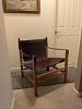 Furniture: CB2 leather safari chair, vintage marble top pot cupboard, vintage metal cabinet with wood top, wood bookcase, small bar and side table, coffee table, and vintage chairs.
