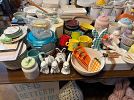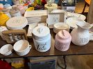 Indoor garage sale with many items. Brand new Rae Dunn items, home decor and other miscellaneous items.
