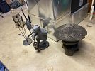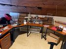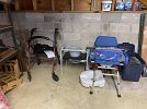 Bernina 1230 (Switzerland) sewing machine w/table; GE upright freezer; Heavy duty metal shelving units; Metal storage cabinets; outside yard 'decor'; plant pots/trays; plant stakes; leaf blower, rakes/shovels; Craftsman cabinet/drawer system; Craftsman 'radial saw'; heavy duty work table; ++ SO Much More....