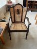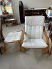 Jackobean style wood/cane chair; pair of Ikea Mcm chairs w/ottomans; U-shape modern desk; small bookshelves; vintage metal trunk;