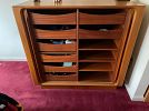 High end imported modern Danish 1960's furniture - to include: stunning teak tambour door sideboard; beautiful king size teak bed frame w/attached end tables; 2 awesome teak dressers;