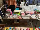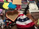 Baby items, crib/toddler bed and mattress, pack -n- play, stroller, kids toys, womens and girls clothes, men’s leather motorcycle jacket, houseware items, Christmas decor, 5’x8’ rug, queen headboard, DVDs, books