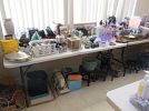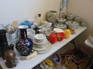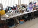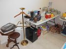 WE HAVE: REALLY NICE NIC NAC ITEMS, TOWELS, VINTAGE ITEMS, COSTUME J, SHEETS, ART WORK, LOADS OF CLEANING SUPPLIES, NICE MID CENTURY MODERN DINNING TABLE, BEAUTIFUL LAMPS, OUT DOOR PATIO SET AND CHAIRS, TOOLS, YARD EQUIPMENT, CRYSTAL, POTS, PANS, DISHES, RECORD ALBUMS, SOME ASIAN ITEMS, AND A LOT OF ASSORTED NICE SMALL PIECES OF FURNITURE, CRYSTAL, ART WORK, ASIAN SCREEN STAND UP LIGHTING, LOADS OF WOMAN DESIGNER CLOTHES, SHOES, BELTS, ELECTRONICS, WOMAN’S HAND BAGS, TOOLS AND BIKE AND OUT DOOR EQUIPMENT.