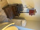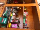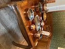 a m m o and reloading, uranium glass, tools, fishing gear, yard tools, power tools, furniture, Nikko Christmas dishes, art, collectibles, French/cottage style dining table and hutch, patio furniture, stamps, OK 89 Olympic pin set, toys, cameras, antique bottles and glass, collectible miniatures, vintage chinoisserie style dining table, vintage hall tree, western style chair and ottoman, lots of good stuff!