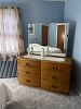 Vintage mid-century modern Heywood-Wakefield or United Furniture 4 piece 1950s Sieling Modern Bedroom Set with 6 Drawer dresser and mirror, 8 Drawer tall dresser and end table - $500