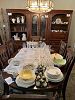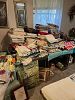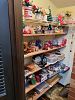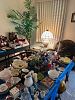 Dining table and six chairs, matching buffet and china cabinet, flatscreen TVs, DVDs, CDs, books, boat box, outdoor furniture, walkers, cane collection, so many linens, dolls, scarves, ladies clothing and shoes, men's clothing and shoes, stained glass and supplies, boxes of greeting cards