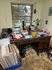 Computer, keyboard, so much craft supplies, frames, daybed w/trundle, three desks, men's hats, king bed, all weather wicker chairs,