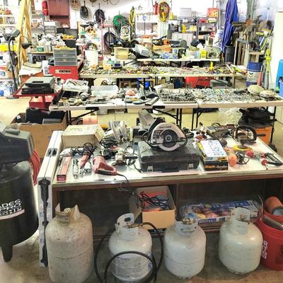 The House & Shop are FULL! TinLizzie Longarm Quilting Machine, Riding Mower, 2 Trailers, Tools, Toolboxes, Building Materials, Old Car Parts, Gardening Items, Planters, Outdoor Furniture, Kitchenware, Housewares, Collectibles, Records, Dining Set, Mid Century Hutch, Queen Size Bed Frame with Mattress Dressers, End Tables, Recliner, Loveseat, TVs, Electronics, Christmas Decor, Framed Artwork, Rugs, Firewood, & Much More! Watch for More Info & Photos as the sale approaches!