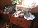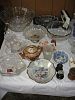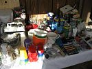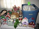 Hide a bed sofa, cukoclock, 2 matching recliners, faux suede recliner, corner tv stand, lamps, chest of of drawers, dressers, 2 beds, 2 tv's. Purses, linens, bedding, craft work items, candles, angel statues, vintage wooden high chair, glassware, microwave, toaster oven, 2 sewing machines, stereos, dishes, dining table 6/chairs, chocolate set, birdbath, gazing ball with stand, antique wicker planter, glider with footstool, collector plates, small appliances, tools, tool boxes, vintage fan, vintage laundry sink. Wall decor, HOLIDAY DECOR, CHRISTMAS, EASTER, THANKSGIVING, FALL, VALENTINES AND MORE! Small sorm refig. Stereo speakers, turntable, stereo equiipment, cameras, radios, pool table. LAVA LAMP!!! Round oak claw foot table 2 chairs, Console stereo, silk florals, lawn sweeper, ladders, snow blower, lawn chairs, walkers, yard equipment, TELEPHONES, cassette tapes, CD's, SO MUCH MORE!