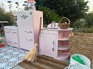 Furniture: Bookshelves, benches, cabinets, chairs, tables, lamps. Linens: bedding, blankets, pillows, towels - all in excellent condition. Kitchen ware: dish sets, catering equipment. Hand-painted antique and rare neon signs. Home decor: Art, Decorative plants, glassware. Bonsai and succulent plants (real). Garden Pieces. Iron urns. Brand-New electronics including headphones, speakers, massage guns, clothing steamer, DVDs. Women’s Clothing: bags, hats, dresses, shoes, and outwear. Large selection of bath and body products, candles. Men’s Clothing: Hawaiian shirt collection. Children’s Play Sets, Furniture, Toys, Games, Brand-New Kiddie Pool. Collectibles: NFL, American Girl Doll. So much more!