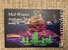 Wheaton Mid-Winter Antique Show- One Day Only- Saturday, January 24th. 10 a.m. to 4 p.m. Approximately 40 quality dealers inside the Wheaton Arts Event Center displaying a wide array of antiques, Mid Century, Vintage, Artwork, Books, ceramics, furniture, glass, jewelry, linens, toys, and so much more.The Artist Studios, Museum of American Glass and Museum Stores will be open during the event.