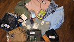 - A ton of men's clothing, BRAND NEW, WITH TAGS, some nice brands (Ralph Lauren, Armani Exchange, Adidas); slacks in size 34×30; casual shirts, polos, and button-ups in various sizes, M-XL, all of it priced $5 and under